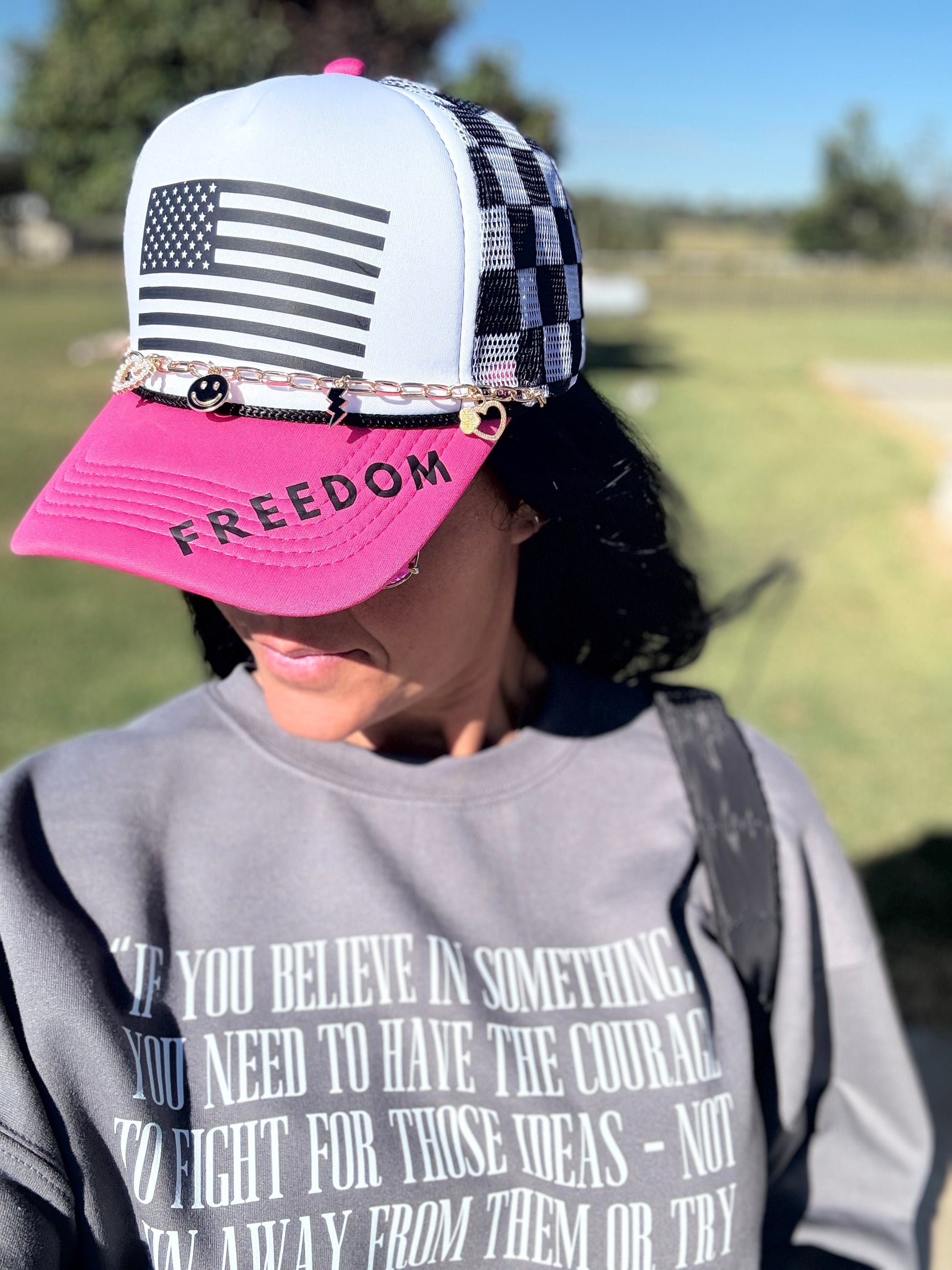Show your love and pride with the "I AM CHARLIE" Trucker Hat, handcrafted with heart by Kodee Lissa Boutique. This playful hat celebrates the spirit of Charlie Kirk in a fun, stylish way—perfect for fans who want to wear their admiration loud and proud. With a comfortable fit and bold design, it’s an easy go-to accessory that sparks conversations and honors a meaningful legacy. Wear it, share it, and show the world you’re #TeamCharlie!
